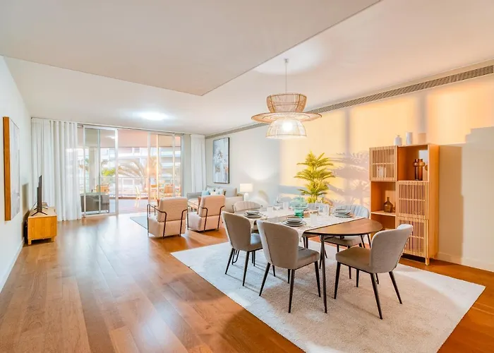 O Suite Bm - 3 Pools-Gym-Ac-Huge Balcony Sea View Funchal à beira-mar de 3 quartos oferece proximidade conveniente com atrações da cidade como o Anjo da Praça da Assicom, situado a 6 minutos de distância a pé. Com terraço com vistas para a piscina, este apartamento está situado 250 metros da Praia Formosa.